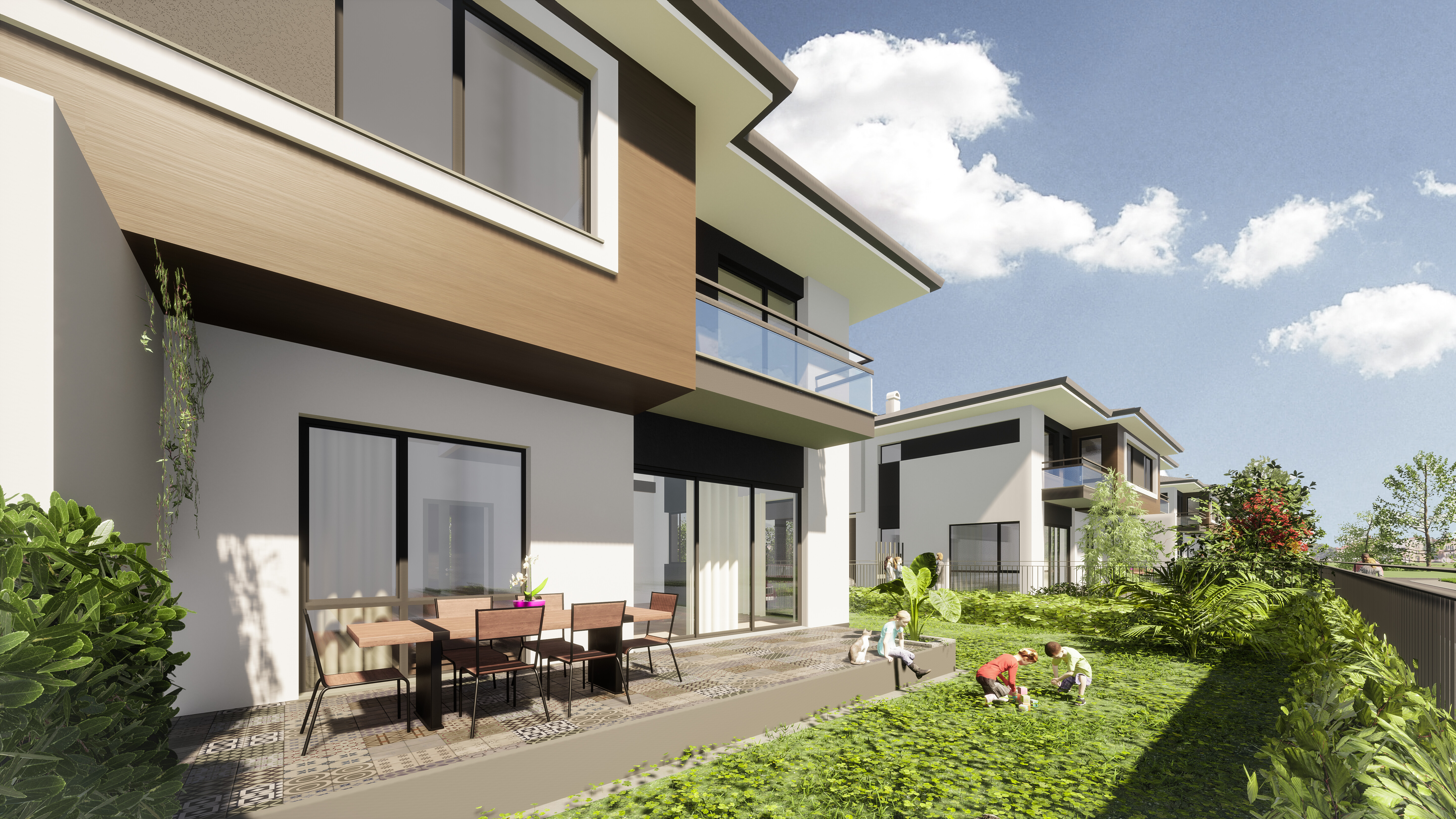 · Всяка къща има самостоятелен двор с веранда и до 2 паркоместа за автомобил.